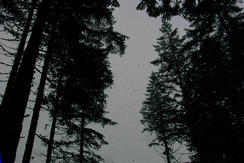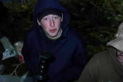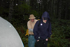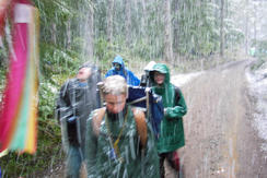 This has to be the first camporee that I've ever been on where it snowed. Ty F and Curtis M preparing to bolt as it snows.